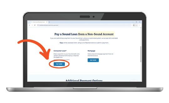 3. Scroll down and you will see “Pay a Sound Loan from a Non-Sound Account.” Select the Pay Now button beneath Consumer Loan*.